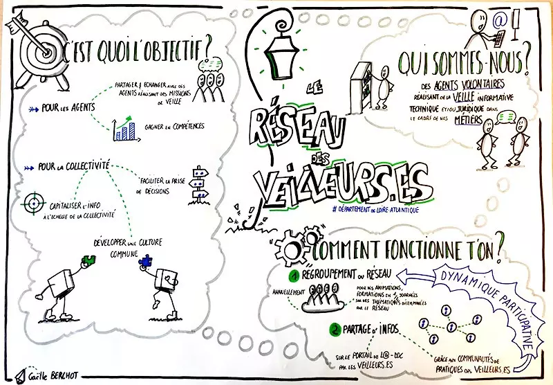 Le réseau s’appuie sur des agents volontaires, qu’ils soient ou non veilleur·ses(mission inscrite dans les fiches de poste). Il se réunit deux à trois fois par an, en présentiel ou à distance. Un espace collaboratif, encore en phase de déploiement, doit faciliter les échanges et la mise à disposition des documents structurants.