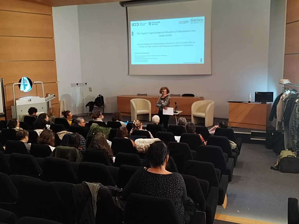 Avec tout d’abord Kaltoum Mahmoudi, maîtresse de conférence en sciences de l’information, qui a apporté une autre dimension à l’EMI en abordant l’ECMI (éducation critique aux médias et à l’information).